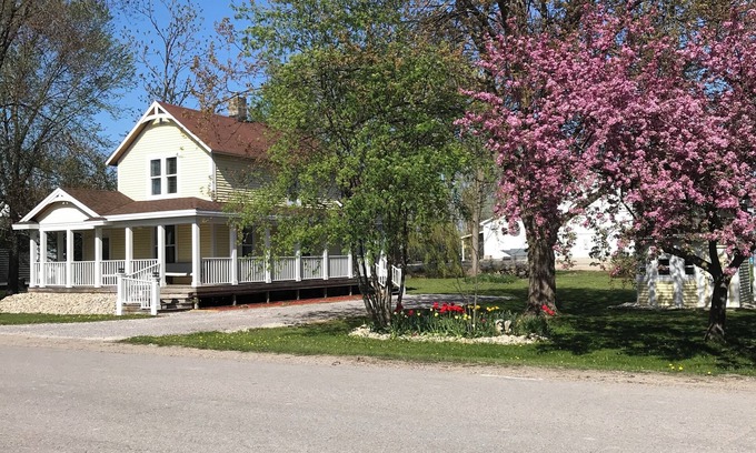Quaint Victorian on 2 lots. 4 bedrooms, Walk to Town, Lakes, Beaches, Parks, Restaurants and Marinas and Weekly Summer Festivals, Craft Shows, all within 2 short blocks of Village of Elk Rapids. No highways to cross. Bike friendly Town and Trails nearby, also Canoeing and enjoy Farmers Markets and nearby Award-Winning Golf Courses and Famous Flint Fields Horse Shows, Turtle Creek Casino and a short drive to Traverse City. Visit Williamsburg, Kewadin, and Torch Lake Sandbar and The Chain of Lakes. Enjoy evenings on the wrap around covered porch, plenty of seating with grill, make some family memories in this Historic Town surrounded by Lakes!