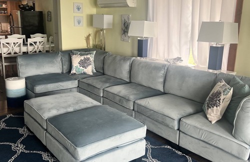 Inside, the living room features large windows overlooking the Sound, creating a cozy spot to sip your morning coffee while enjoying the view. The home includes two king bedrooms: one master suite with a private bathroom and a second king bedroom with access to a shared bathroom. A private laundry room is also available for your convenience.