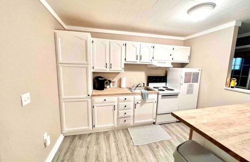 Main house: Renovated and open concept layout, kitchen with utensils, dinnerware, pots/pans and other kitchen basics. Refrigerator/freezer, dining room table, living room with seating and TV w/Roku. Two bedrooms each equipped with a queen bed, dressers and a closet. The living room has a pull-out couch. On-site laundry and bathroom with a tub/shower.