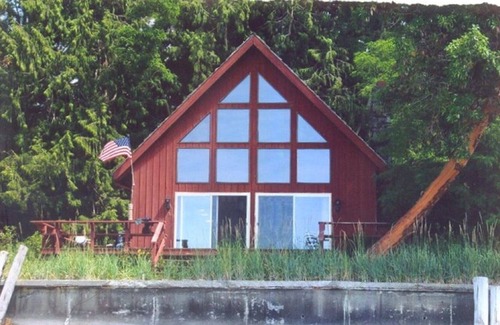 Imagine... you are sitting on the deck with drink in hand, the tide has come in and the beautiful waters of Liberty Bay are just 10 feet from where you sit. The day has been spent wandering the beach, searching out the best shells and gathering clams for the evening hors d'oeuvres. In the evening you will enjoy a roaring fire in the stone fireplace while mesmerized by the soft twinkling lights of Bainbridge Island across the bay.