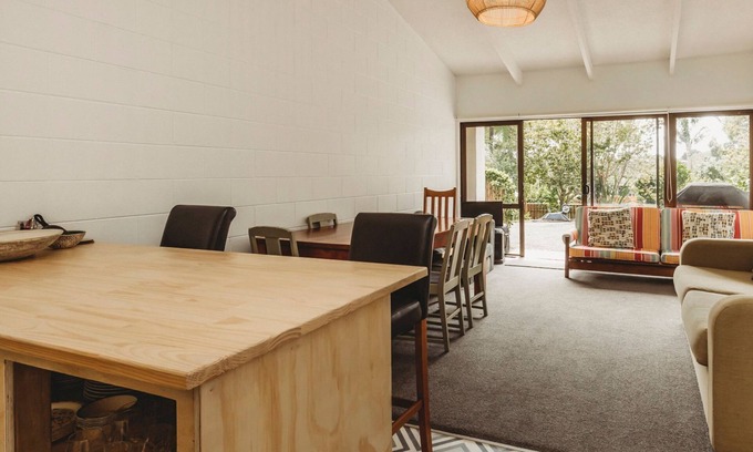 The perfect place for families to come together and make happy holiday memories. The owners have cleverly turned this space into a well equipped holiday property which is very cost effective and sleeps up to twelve guests. Located in a tourist hot spot a quick stroll to the stunning Oakura beach and the Oakura Village.