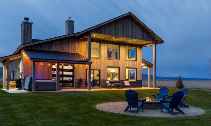 This new mountain modern barn home just got finished in 2022 and is perfect for your Teton Valley adventures. This home has 3 bedrooms and 2.5 baths and can comfortably sleep 12. Home is located at end of a cul-de-sac and nestled on expansive lot of over 5 acres. Breathtaking mountain and valley views in all directions. To the east the magical 4-peak Teton range and to the west the charming Big Holes mountains with beautiful crop land mixed in between nestled in the valley. You will find this property will be perfect for your family gathering, romantic getaway or couple's retreat. With over 3,000sf of heated area there is plenty of room to spread out. Great location just 6.5 miles from downtown Driggs, 2.6 miles to Teton River, 19 miles to Grand Targhee, 39 miles to Jackson, 44 miles to Grand Teton National Park and 94 Miles to Yellowstone National Park.