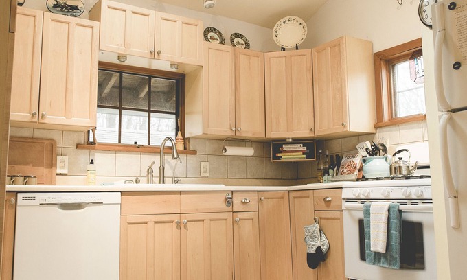 There are three bedrooms in total: one downstairs with a queen-sized bed, and two upstairs, one with a full bed and a twin, and the other with two twin beds. This is a total of 3 one-person beds and 2 two-person beds. Comfortably sleeps up to 8 people , if one person stays on the couch, or on my twin air mattress. There is one bathroom with both a standing shower and a separate tub. The kitchen is fully equipped with All-Clad pans, sharp knives, and spices galore. The large patio, accessible through the sliding French-style doors in the dining room, has both a gas BBQ and a fire pit. The living room also has a wood-burning stove, which is very cozy in the winter. The house sits on almost 5.5 acres, and the Fishkill Creek bisects the backyard.