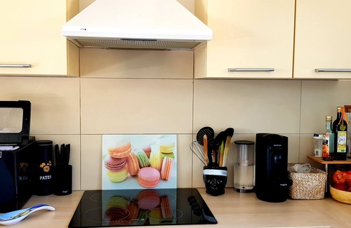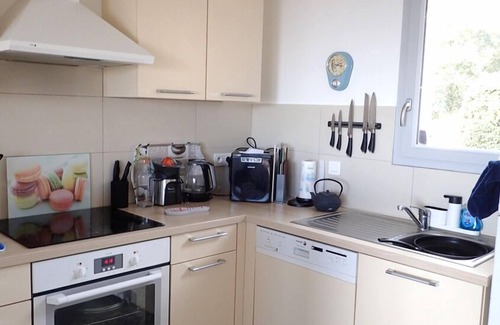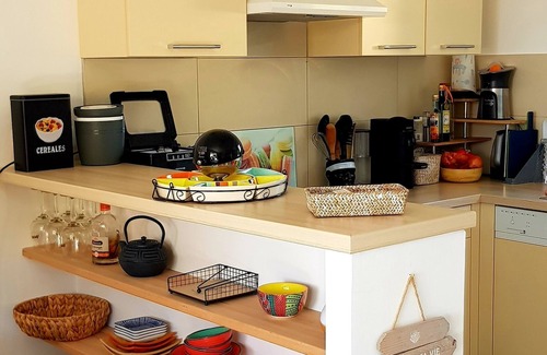 On the ground floor: open kitchen (oven, induction hob, extractor hood, fridge-freezer, dishwasher, microwave, filter coffee maker, nespresso machine magimix Vertuo (new pods), ice machine, electric citrus press, kettle, toaster ...), lounge with TV, sofa bed and 2 armchairs, shower room-wc and washing machine.