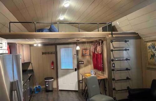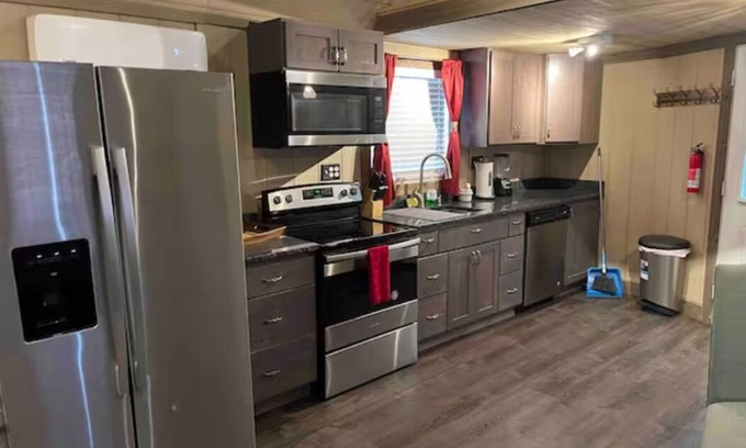 You’ll be pleasantly surprised with just how big a tiny house can feel in our largest unit. It has a combo washer/dryer, stove, full size fridge, dishwasher, electric fire place, record player, Nintendo, living room and master bedroom have their own TV, bathroom, instant hot water and more.