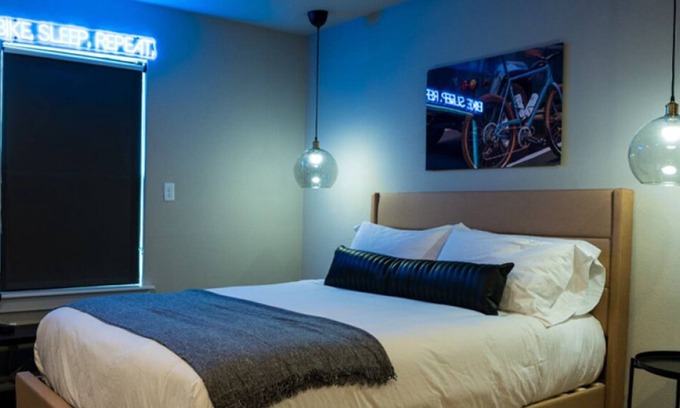 Welcome to The Bike Inn, Bentonville! A beautifully restored Boutique Motel located within biking distance to the Downtown Bentonville & all the trails NWA has to offer. We wanted to build a place where cyclists of all kinds can surround themselves with a community of like-minded individuals & a space designed exclusively for cyclists. After the sun sets on your day of shredding trails, kickback & crack a cold one by the fire pit & talk about the trails you found that day.