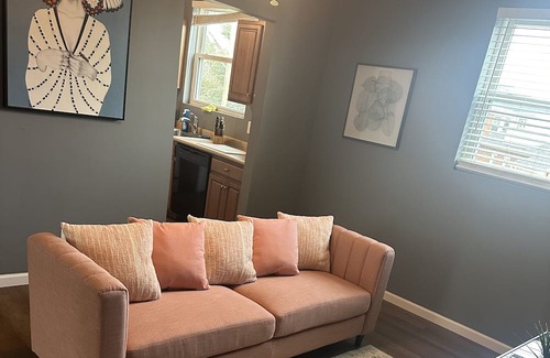 Your Carnegie adventure begins at this 1-bedroom apartment. Nestled in the heart of the city, this quaint and soothing property offers a gorgeous retreat for guests. The bedroom features a comfortable full bed, ensuring a restful night's sleep. The bathroom is equipped with a hair dryer and a bathtub for your convenience. In the additional living room space, you'll find a cozy twin bed. With amenities like WiFi, heating, a washing machine, and AC, your stay will be as comfortable as can be. We look forward to welcoming you to our place, where relaxation and tranquility await.