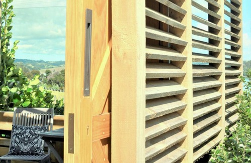 Looking out over the Mahurangi Harbour, The Black Box Studio offers a romantic summer spot for couples to escape. Traffic dependant, it is just over an hour's drive from Auckland!
