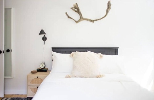 The Black Lodge is a modern country home, filled with stylish and sleek details—and surrounded by nature. Nestled deep within the Catskills, it's the perfect getaway to relax and enjoy the mountain air, as well as the views, with nearby hiking trails and streams in the backyard to explore. Inside, enjoy creature comforts with all brand-new appliances and an airy open-concept living room, dining room and a fully-equipped kitchen. The Black Lodge is sure to please nature and design lovers alike.