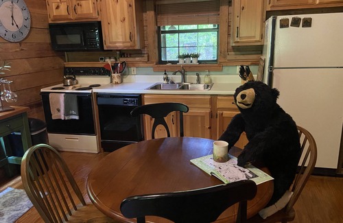 Our charming and cozy, all-wood cabin is perfect for individuals on retreat, couples, friends who are getting together, and small families. The cabin sleeps up to 5 guests - there is a queen bedroom with a door on the first floor and a queen bed with twin trundle in the loft. We also offer 2 bathrooms - with a shower on the 2nd floor and a jacuzzi tub on the first floor.