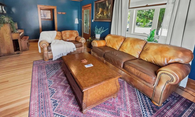 Experience the ultimate family retreat at this restored Victorian home. Nestled in the heart of downtown, our contemporary space combines style and comfort for any getaway. Enjoy spacious living areas with sleek furnishings and chic décor, perfect for relaxation and entertainment. Prepare delicious meals in the fully equipped kitchen with state-of-the-art appliances. Retreat to cozy bedrooms with plush bedding for a restful night's sleep. Multiple bathrooms make getting ready for exploration easy. Explore nearby attractions from eclectic shops to renowned restaurants. After a day of adventures, unwind in the inviting living space or on the covered porch. Whether strolling through Main Street or relaxing indoors, our Blue Lion promises an unforgettable family experience.