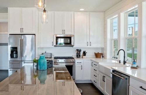 Expertly decorated with high-end furnishings throughout from Restoration Hardware and Pottery Barn, “The BlueWater” has a unique rustic farmhouse vibe that invites you in and makes you feel right at home. From the extensive shiplap walls to the salvaged wood farmhouse tables, this home exudes warmth and comfort at every turn.