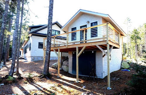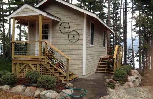 The Boathouse is an elevated one room cabin with a private deck overlooking Somes Sound. The property is secluded and quiet and the private beach is steps away. The cabin has a full bath, small fridge, microwave, and grill. The bed is a trundle that has two twin beds. The bottom twin can be raised to be on the same level as the upper twin. This cabin is part of a larger property (3 total buildings) and can be rented separately or in conjunction with the other properties. See VRBO 1010585 for more information. PLEASE be aware that there may be rental times when all three of the properties are rented to different guests. The cabin is the perfect spot to read and relax.