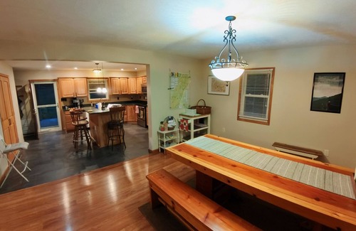 The Branch Bike House in George Washington National Forest offers modern comforts: a fully equipped kitchen, cozy living room, high-speed Wi-Fi, and an outdoor firepit for s’mores. With three spacious bedrooms, three full baths, and large common areas, it’s perfect for groups. Located at the base of Reddish Knob & Timber Ridge and close to Narrowback & Wolf Ridge trailheads, it’s an ideal base for hiking, biking, and outdoor adventures.