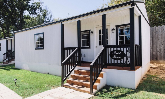 Forget your worries in this modern industrial brick themed tiny home. A hidden gem located in East, TX about an 1hr outside of the DFW Metroplex. We have a lot of great amenities, which includes access to our lagoon style pool & jacuzzi, fire pit, and spacious back yard.