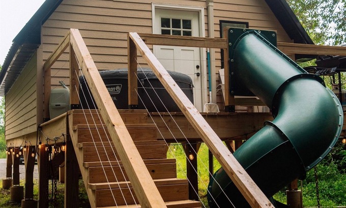 Reconnect with nature at our unique treehouse Aframe stay near ALL of the hiking. Just minutes from downtown Marion, IL sporting a 7ft tube slide, khaki lap siding exterior and dark wood tone interior, The Brunette is small and mighty with an airy studio feel but packed with all of the necessities of a full sized home. This stay also includes its very own nature trail! Come ready to see lots of wildlife and explore Southern Illinois! Our 2 treehouses are secluded but do share the same property!