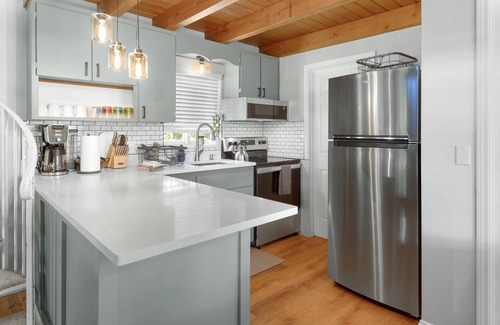 Welcome to"The Buck Spur", a fully updated cottage on 1.25 peaceful acres. We are just 10 minutes from Downtown Sandpoint, the Sandpoint City Beach, and 30 minutes to Silverwood Theme Park. The Buck Spur has a warm, cozy, inviting feel with a wraparound front porch, a gorgeous kitchen with Quartz countertops and Stainless appliances, along with the most comfortable of beds. We do have a fire pit so sit around and enjoy a cold one and or smores with the kids after your full day of adventure!