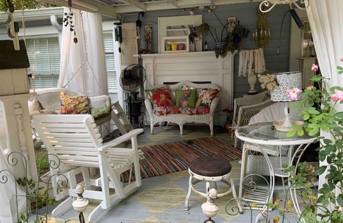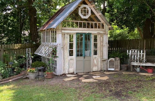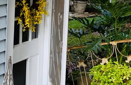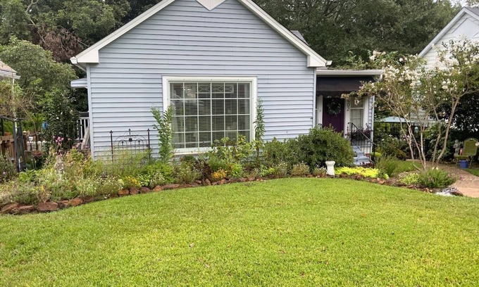 The Bungalow is a charming, 1950 home, one bedroom with a queen bed. A twin daybed in the living room that is comfortable while watching tv or as an extra bed. A vintage garden table perfect for dining or home office. The cottage is attached to my 1940’s home in the old towthe historic district. LA Tech campus and downtown shopping are only three blocks walking distance! Also, A five minute drive to athletic fields, baseball, football basketballEnjoy a private setting with a comfortable mix of vintage and modern-features. One large private bedroom with a double bed, a bathroom with tub/shower and a kitchenette. There is easy access to a attached covered and furnished deck surrounded by my cottage garden. , pecan, oak and magnolia trees. Perfect for enjoying complementary coffee or evening beverages. Wifi is available of course!