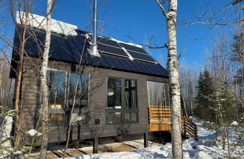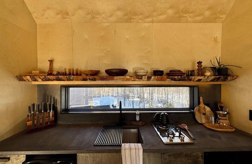The Burrow is powered by the sun and heated with propane and wood, but still offers many modern amenities including internet. Visiting in the summer is carefree and requires little to no monitoring of the cabin's off-grid systems. A visit in the winter however will require you to monitor battery power levels and burn wood to keep the cabin at a comfortable temperature in addition to a vented, propane heater.