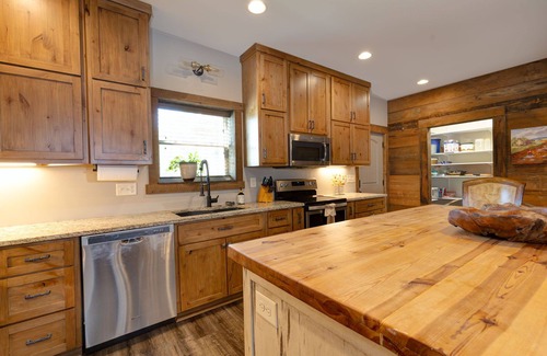 Stunning 4 bedroom, 4.5 bathroom cabin with gorgeous lake views offers peace and privacy all within just a few minutes of downtown Auburn and many other local hot spots. With rustic finishes and all the modern necessities you have it all. Stepping into the cabin you are greeted by the warm open concept kitchen and living room compete with all reclaimed barn wood walls. Each bedroom offers its own private bathroom with fresh linens and towels in each. The large living room is a great gathering place for everyone to relax, chat, or watch TV. The front and back patios are great spot to sit and kick back while taking in the tranquil lake views.
