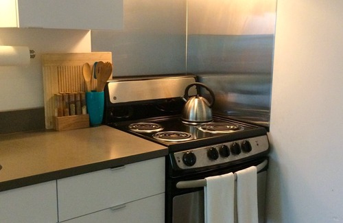 Gaze at this stunning view down from a brand new condo perched right on the shore! The Captain's Suite is one of four guests apartments in the Main Street Station, designed to complement beloved historic structures of Eastsound. This is our premium unit, one bedroom with a queen bed, pull-out sofa, fully equipped compact kitchen, barbeque, porch just steps from the water, and nearby stairs to the gorgeous rocky beach. 500 square feet architecturally crafted with attention to every detail, and all new furnishings in coastal, organic style we call 'beachy elegance.' The rooms highlight natural textures and products from local artisans. This unit is on the main floor for easy access, and includes a washer and dryer for your personal use. In Eastsound Village you will find all you need -- the farmer's market, bookstore, kayak rentals, bicycles, grocery, natural foods, boutiques, gift shops, and more. In fact, you don't even have to bring a car! Skip the ferry lines and pack light, take a shuttle or taxi to Eastsound, and the rest of your trip is easy. Feel free to ask us for any other special details you may desire for your get-away. Simply the perfect spot for your Orcas Island adventure! (See VRBO listings 419265, 420673 and 420677 for more options and group possibilities). Please note that we thoroughly disinfect our units between guests.