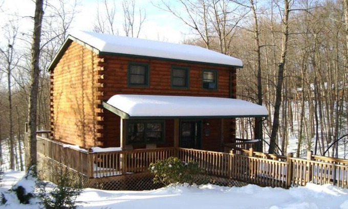 The Cardinal log cabin. Wrap around deck, firepit. Next to Pipestem resort park. | House in Bluestone River