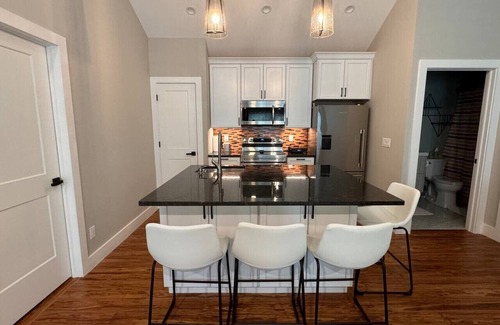 This carriage house sits on 2 acres, with the original 1860s house. Located 1 mile East of historic Mass. St. in Lawrence, KS, it has 3 BR & 2 bathrooms. Access is limited to the space above the garage (must climb stairs), private balcony, & the front/middle yard. Absolutely ZERO smoking OR vaping tolerated or allowed on premises! Be aware before booking!