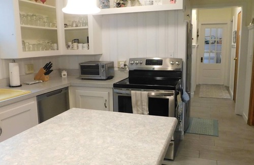 The spacious home features a library in the turret, curved staircase, and updated kitchen. In addition, the first floor features a family room, large dining room, bedroom with queen size bed, laundry room, and full bath. The master bedroom is upstairs and features a king size ergonomic bed with a remote control to raise and lower the head and feet. Besides the library and remodeled full bath, there are two other bedrooms upstairs that sleeps 6 people. Bed linens and bath towels provided. (Beach towels are not provided).