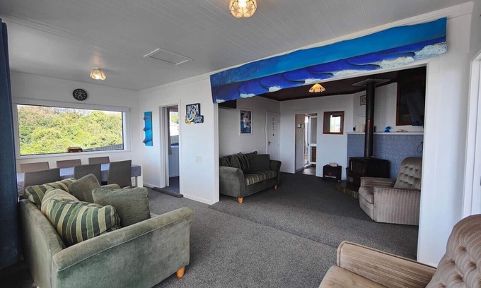 Welcome to The Chalet at Mitchell’s Bay, a charming coastal retreat in picturesque Riverton! This delightful bach offers an authentic and timeless experience.