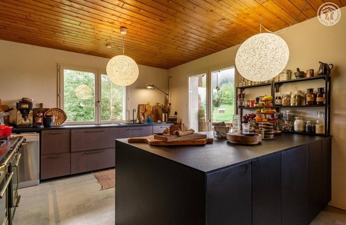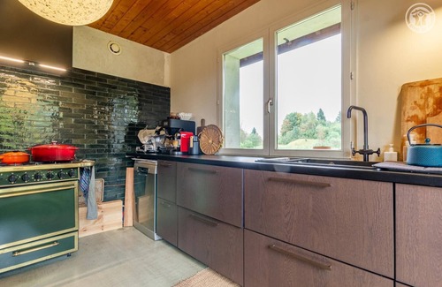 Large independent chalet on 3 levels. On the ground floor: separate toilet, laundry room (washing machine, dryer). On the 1st floor (access by an external then internal staircase): living room-kitchen with access to the terrace and garden, 1 suite (1 double bed 160x200 cm + 1 convertible sofa 140x200 cm, 1 bathroom with bathtub and shower, separate toilet). On the 2nd floor: 1 bedroom with mezzanine (1 double bed 160x200 cm + 2 single beds 90x190 cm under height less than 1m80) with shower room (shower + toilet) and 1 bedroom (1 double bed 160x200 cm + 2 single bunk beds 90x190 cm) with shower room (shower) and separate toilet. 1 suite comprising 2 bedrooms (3 single beds 90x200 cm + 1 double bed 160x200 cm), bathroom (shower), separate toilet and living room. Norwegian bath in the garden and brazier on the terrace. Ski and bicycle storage. Private parking (5 cars). Enchanting setting for this chalet located in the heart of the Massif des Bauges where nothing will disturb your stay except the bursts of laughter around the fireplace. At the start of the hiking trails, you will have the choice for skiing in winter (4km from La Féclaz and the Savoie Grand Revard resort, 27 km from Aillons Margeriaz, 33 km from Semnoz). Chalet renovated with great taste, you immediately feel at home. Vast outdoor space between woods and meadows where it will be good to enjoy a Norwegian bath session, a barbecue with friends or a reading break in the shade of the conifers. Great comfort (all included, linen and cleaning, one bathroom per room) and calm guaranteed.
