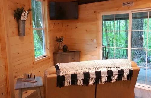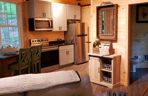 We are located only 20 minutes away from the new Great Wolf Lodge Waterpark! Plan your trip today and enjoy staying in a real cabin in the woods with all the amenities for half the price."