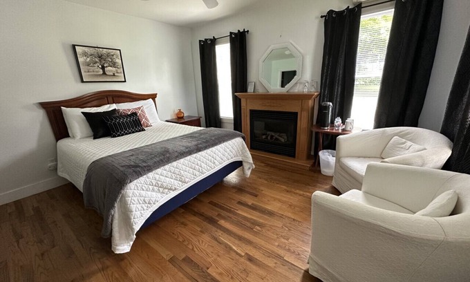 Unit 6 is a cozy retreat perfect for a quick visit to this picturesque town. With its prime location, you'll enjoy easy access to local restaurants, shops, a grocery store, and public parks. This inviting apartment features a comfortable king-sized bed, a Roku TV for your entertainment, and a fully stocked bathroom with a walk-in shower. Additionally, you'll find a Keurig coffee machine complete with K-cups, cream, and sugar, along with a mini-fridge for your convenience.