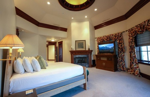 The bathrooms boast spa-like amenities, including soaking tubs and rainfall showers, ensuring a truly indulgent experience. A custom elevator allows for ease of access by guests of all mobilities.