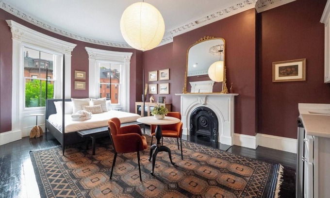 Discover The Chester, A Boutique Stay in the heart of the South End. Relax in a luxurious king-size four-poster bed or accommodate guests on the queen lay flat sofa. Enjoy the living area with a Smart TV and kitchenette equipped for convenience. Expertly designed with restored historic details, painted wood floors, and beautiful rugs, this retreat exudes sophistication. Tucked away off the street, enjoy tranquility while being close to all Boston has to offer.