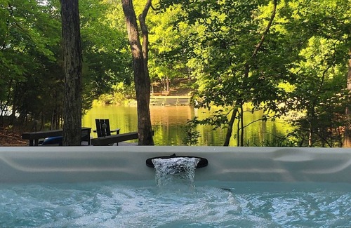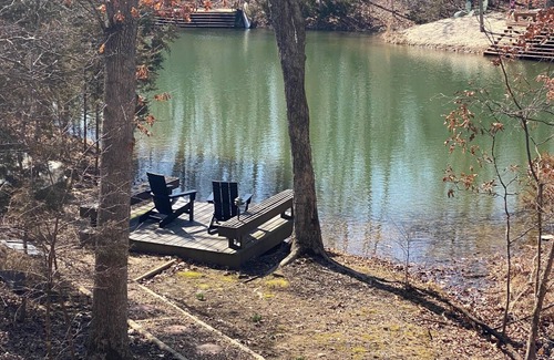 The house is nestled in the woods with a nice flat walk to the dock. There is also a zero-entry rock bed making it easy to wade into the lake and use the boats from (1 paddle boat and 2 kayaks available on property).