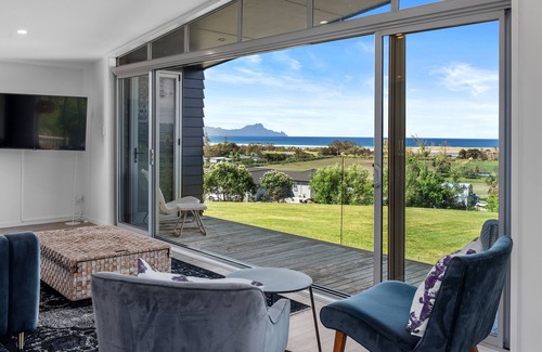 This contemporary style holiday home (with 15 AMP for after 10pm EV car charging) is nestled amongst executive lifestyle homes and boasts a visual feast of nature with Hen Island and sea colour-changing views. The Waipu Cove’s gorgeous kayaker's Estuary and white sand dunes are within walking distance to fish or swim.