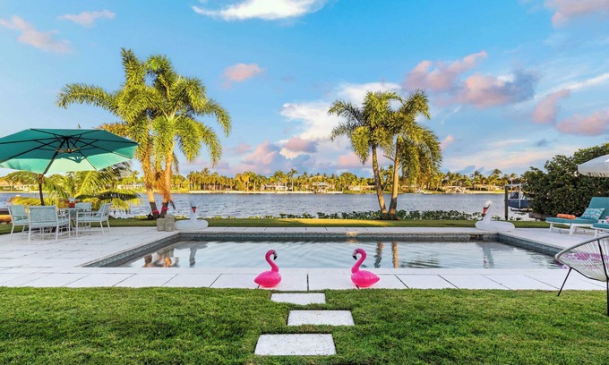 Introducing Villa Flamingo, part of The Clarke Collection of villas in Lake Clarke Shores, your dream retreat and the epitome of luxury and style. This Mid-Century Modern Contemporary home feels like a private 5-star resort, with 2,600 square feet of elegant living space, 2 bedrooms, 2.5 bathrooms, and stunning views of Lake Clarke Shores. Enjoy vaulted ceilings, a spacious Florida room, a private backyard with a sleek rectangular heated saltwater pool, and vibrant, modern interiors. Conveniently located near Delray Beach and Palm Beach, this home offers unforgettable luxury.