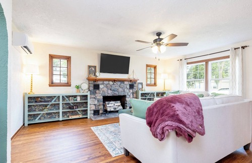 Inside, you'll find vintage decor that feels like a step back in time. The home offers several seating areas, fully equipped kitchen and 4 bedrooms and 2 bathrooms!