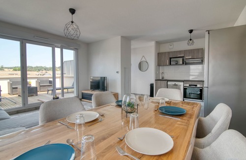 The Cocoonr/Book&Pay agency offers this charming 89 m² apartment for rent in Castelginest, which can accommodate up to 6 people. Located on the 2nd floor (no elevator), it comprises an attractive living room, a fully-equipped kitchen, three bedrooms, two bathrooms and a lovely terrace. Wi-Fi (fiber optics), bed linen and towels included, we're waiting for you!