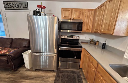 Inside, enjoy modern comfort paired with rustic charm. The newly remodeled kitchen is fully equipped for preparing family feasts, with seating at the table and island for up to 18. Open living spaces and a cozy fireplace invite you to relax after a day of adventure, and with room to sleep 18 comfortably, it’s perfect for large groups or family gatherings.