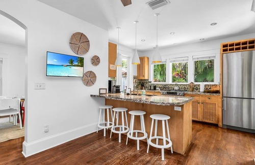 Step into timeless elegance a meticulously restored 1923 Craftsman residence reimagined by a local luxury designer. Blending historic charm with elevated modern finishes, this 4-bedroom, 3.5-bath, with a guest cottage oasis is nestled in the heart of the prestigious El Cid/Mango Promenade District—one of West Palm Beach’s most coveted neighborhoods. Sleeps up to 12 people.