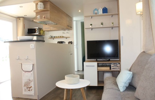 Mobilhome sea view and facing south at the Pointe du Conguel in the Holiday Village SIBLU **** in Quiberon, 10 meters from the beach.