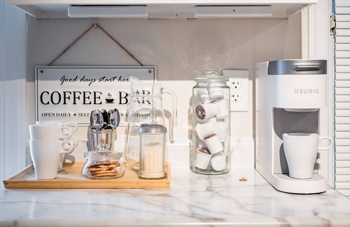 ☆ Kitchen: enjoy a fully stocked kitchen with everything you should need for basic cooking, and more, including a food processor, 4-slice toaster, Keurig coffee with a few pods provided to get you started!