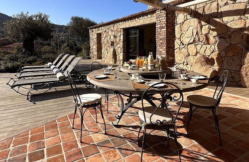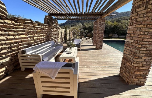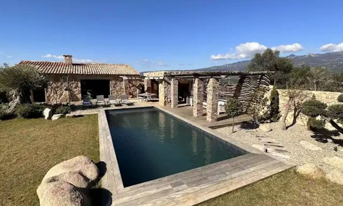 If you dream of renting a luxury farmhouse accompanied by the exclusive and personalized service of a 5-star hotel, you are in the right place! Whether you need recommendations for local restaurants, a massage, a yoga class, a day on a boat, or help organizing a special event, our team is at your disposal to assist you. Contact us to learn more about our premium rental and to plan your next dream stay... Luxurious 1077 ft sheepfold nestled among the rolling hills of the countryside and close to the crystal-clear beaches of Figari. It consists of two beautiful suites, each decorated in a chic and warm style. The first suite benefits from a large private bathroom with a bathtub and shower, a dressing room, and direct access to the garden. The second suite also has its own dressing room and a comfortable en-suite bathroom. The living room, accompanied by its open and fully equipped kitchen, is a refined blend of modernity and authenticity, with a fireplace and large windows creating a spacious and naturally-lit living space. Spend your afternoons in the sun and shade of the garden, with its fully equipped summer kitchen, shaded lounge area, petanque court, vast lawn, and of course, its heated ocean-blue swimming pool with ideal dimensions... You won't want to leave this paradise! Available all year round Weekly, fortnightly, or monthly rental in July and August. Daily cleaning in the morning, linen, and airport transfers included.