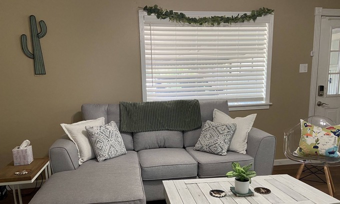 Centrally located 1950s cottage with original hardwood floors, updated spacious kitchen, stylish and cozy common areas, 4K streaming 55” smart tv, and locally sourced decor and furniture.