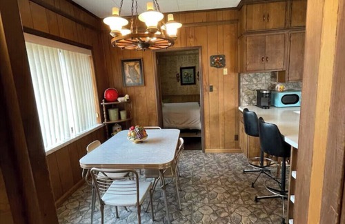 Located in the village of Hamden, The Cool Cat is within a 30 mile radius of nearby state parks which offer hiking, fishing, boating, hunting, kayaking, bicycle trails, and more. We have two kayaks with adult life jackets for use during your stay. You can chill or get your groove on in this unique and spacious 70's themed apartment that is located above our early 1900's Hardware Store and Gift Shop. The Cool Cat is located above our early 1900's operating Hardware Store and Gift Shop. The 70's themed apartment has two bedrooms with walk in closets, a fully stocked Kitchen and dining space, a full Bathroom and a spacious Livingroom. Our business is in operation six days a week, so you can expect to hear the brass shop bells ring as customers enter and exit our store. Please do not hesitate to come into the store to visit or shop. If you need a snack, grab a cold bottled pop out of our vintage Coke cooler and check out our selection of retro candies. We are pet friendly in the apartment and store. ONE pet is permitted to join you during your stay at The Cool Cat. If you are looking for luxury, this is not the space for you. But, it is a wonderfully unique space that has been decorated with Vintage items and stocked with all that you will need to experience/relive the 70's. In the living room, you can watch TV, play records, dance on the orange shag carpet under the disco ball lights, play games, read, and relax on the flower patterned, autumnal-colored velour sofa (just like grandma had). Please adhere to our non-smoking policy. Sorry, there is no handicap access. The Cool Cat is located on the second floor and requires you to climb two flights of stairs to access the apartment. Please watch children closely due to the stairs. Emergency roll down ladders are provided in case of a fire.