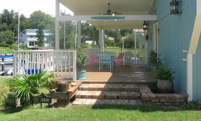 This unique cottage is located directly on the beautiful Ocean Springs Harbor. Its large deck is a wonderful place to relax, and observe the sailboats and wildlife. Pelicans, Great Blue Herons, Night Herons , Egrets and Skimmers all frequent the harbor on a regular basis. You can easily walk to the beach or downtown Ocean Springs, which is filled with art galleries, boutiques and over 100 restaurants. Or you might prefer to rent a bicycle or golf cart to cruise around town at a leisurely pace. Both are available near the cottage. The casinos are just 10 minutes across the Biloxi Bay. Charter boats are available for hire in the Ocean Springs Harbor and Biloxi Harbor. Several golf courses are within a short drive, as well as kayak rentals and tennis courts.