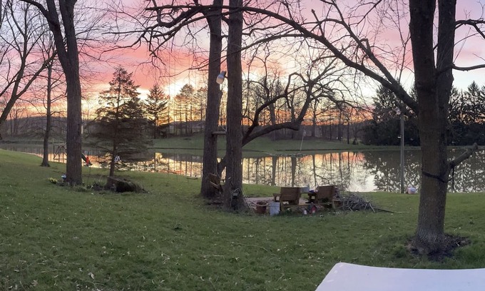Looking for a getaway or a place to stay near Mad River Mountain, Marmon Valley, Ohio Caverns and the Piatt Castles, look no further. Peaceful one room cabin off the beaten path. Queen size bed, pull out couch and blow up air mattress. Smart Tv with Disney, Netflix, and Prime Video. Coffee bar and mini fridge. Enjoy a campfire on the brand fire pit or cook on the outdoor charcoal grill. Access to swings, trampoline and slide for kids.