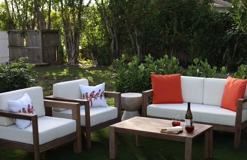This paradise is nestled amidst palms, tropical flowers, and fruit trees; truly a serene spot to savor Florida sunsets in every hue of pink, violet, orange, and gold. At dusk, gather your friends and family for a BBQ. Grill burgers, portobellos, steaks, or fresh-caught seafood! Add tropical flavor with some grilled pineapple, a dash of mango or citrus, or some homemade guacamole. Serve up a gourmet meal at the alfresco dining table.