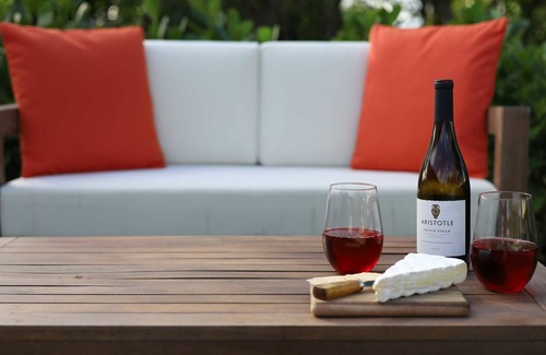After dark, the hot tub is a dreamy place to unwind and stargaze. Melt away your stresses in the bubbling hot spa. At night, outdoor mood lighting and pool lights transform the backyard into a magical, romantic oasis.